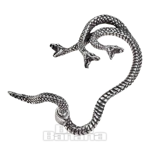 Alchemy Gothic Khthonis Ear Wrap in Silver. This unique gothic ear jewellery is designed to pay homage snakes and serpents. Become a full Medusa by adding this reptilian jewellery to your look. Made from high quality surgical steel. Perfect as a gift for those in love with alternative fashion and interesting jewellery accessories.