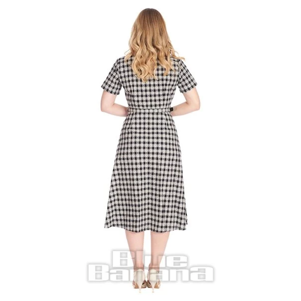 The perfect summer dress is here with the Banned Cherry Check Dress in navy. Featuring a check print with cherries, collar, belt and pockets.