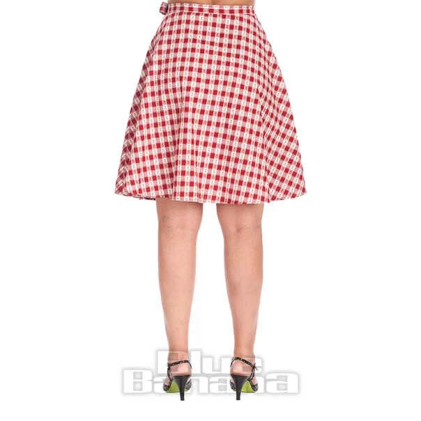 Create a vintage wardrobe with the Banned Cherry Check Skirt in red. Complete with a red check print, pockets and a waist tie.