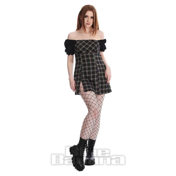 This cute mini dress from Banned offers a black & green tartan print with short puff sleeves and a fitted bodice. Add some tartan to your alternative wardrobe!