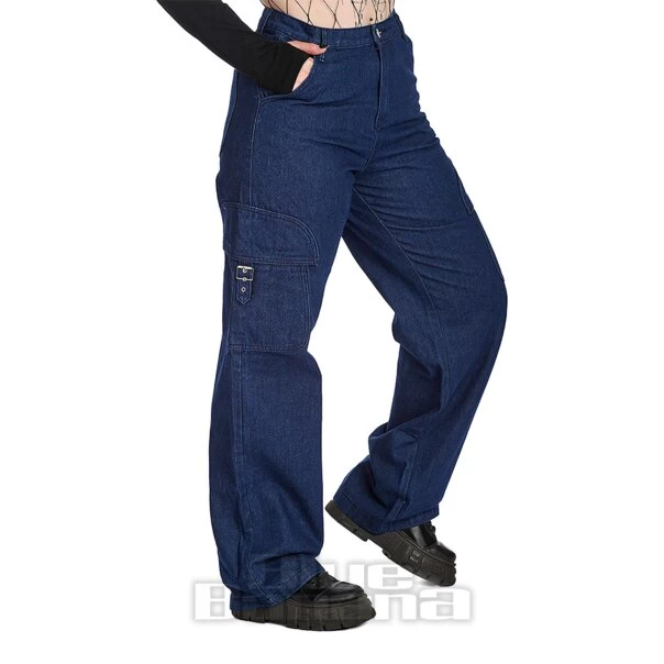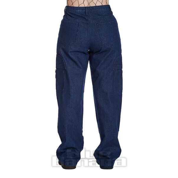 The Banned Wide Leg Blue Denim Trousers are essential 90s fashion. These casual trousers can pair with your grunge, Goth, and alt outfits for daily 90s style.