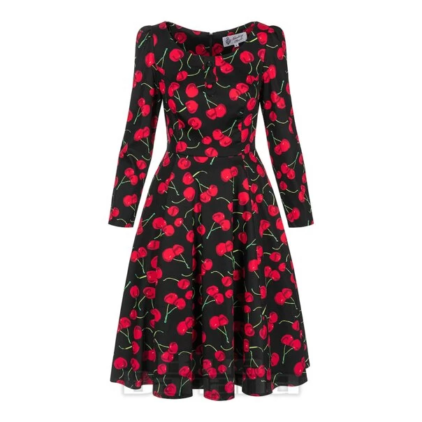 This stunning Red Cherry Dress from Bleeding Heart has long sleeves and a round neckline. This range is exclusive to Blue Banana!