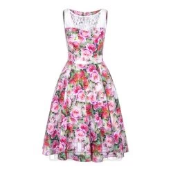 This floral dress from Bleeding Heart offers a colourful flower print and upper lace panel. Dress to impress this season with the Bleeding Heart Pink Roses White Lace Dress.