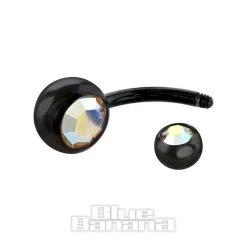 Blue Banana Black Titanium 1.6mm Double Jewelled Navel Bar (Aurora Borealis)