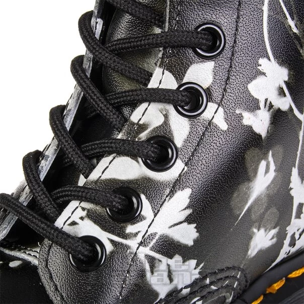 The Dr Martens 1460 Phantom Flower Boots in Black White. Available in sizes UK 4 to UK 7.