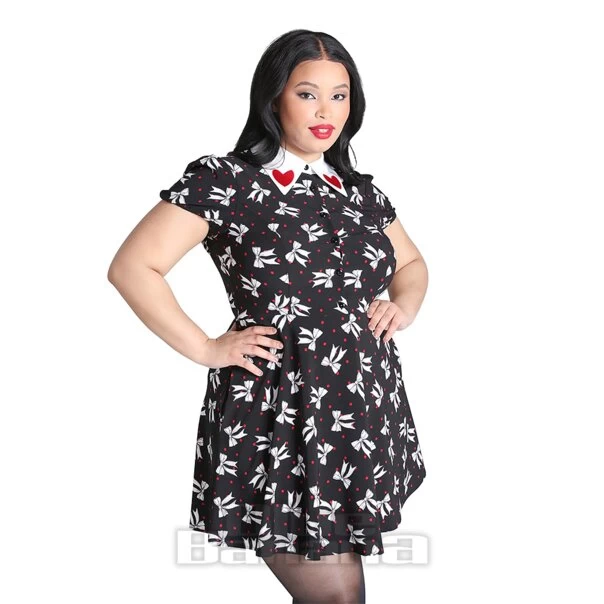 The Hell Bunny Bobbie Mini Dress brings the alt-style to any wardrobe. It’s classic button up black and white base with red polka dot accents is a showstopping staple.