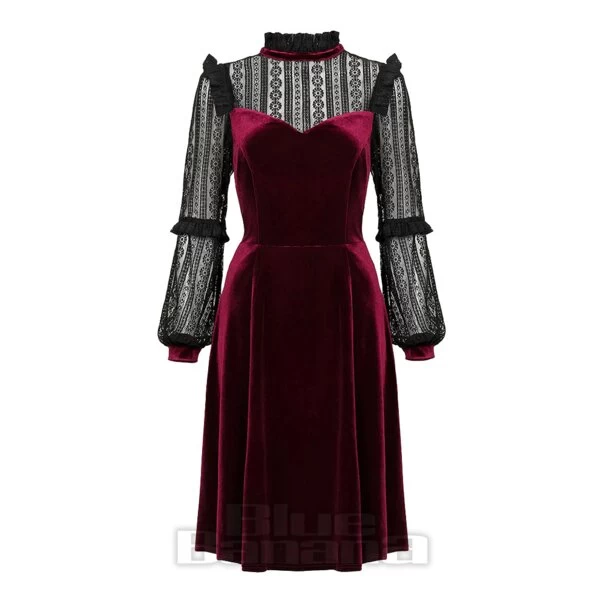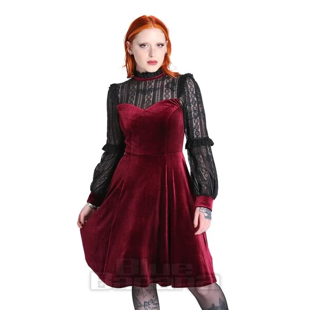 The Hell Bunny Bonnie Dress Needs To Be A Part Of Every Gothic Wardrobe. This Velvet Burgundy and Black Lace Number Is An Undoubtable Win For Any Of Your Upcoming Occasions.