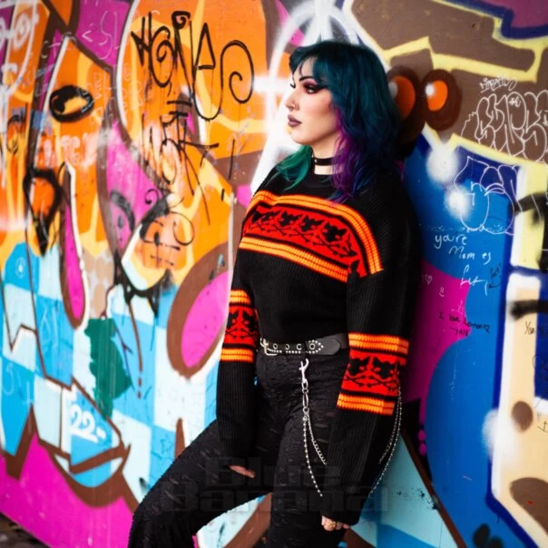 Be the first to review “Jawbreaker Intarsia Hell Kitten Jumper (Black)” Cancel reply