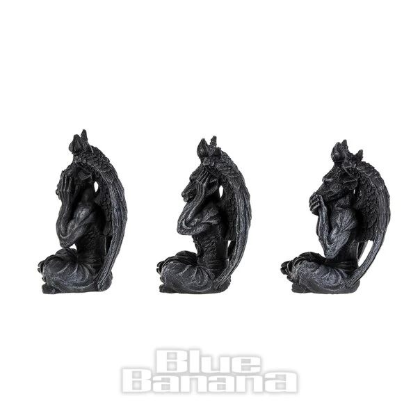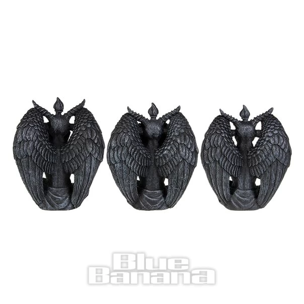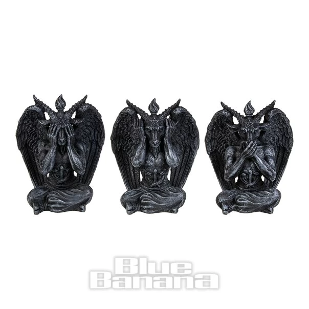 The 3 Wise Baphomet Figurine from Nemesis Now. Available in 10.2 CM. This gothic ornament features 3 gothic Baphomet Figures in the “Hear No Evil, See No Evil, Speak No Evil” Proverb. Add this occult ornament to your home for a touch of macabre.