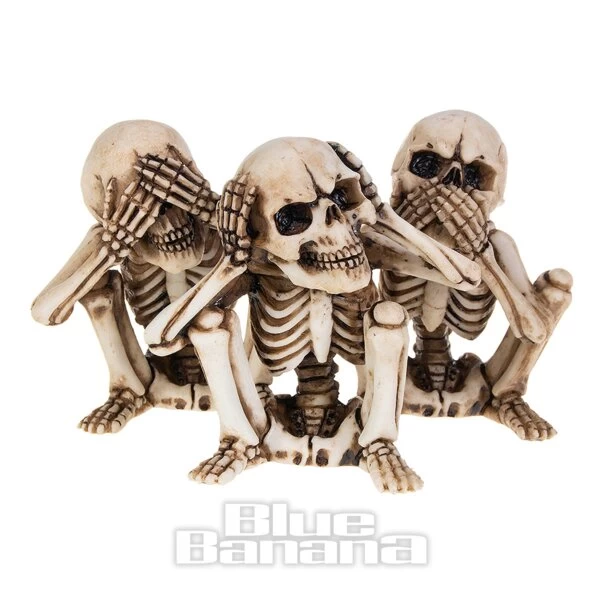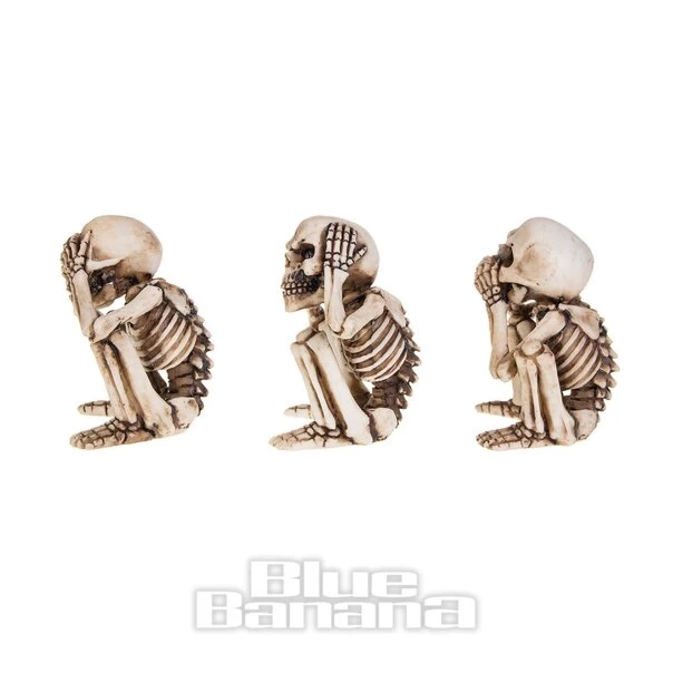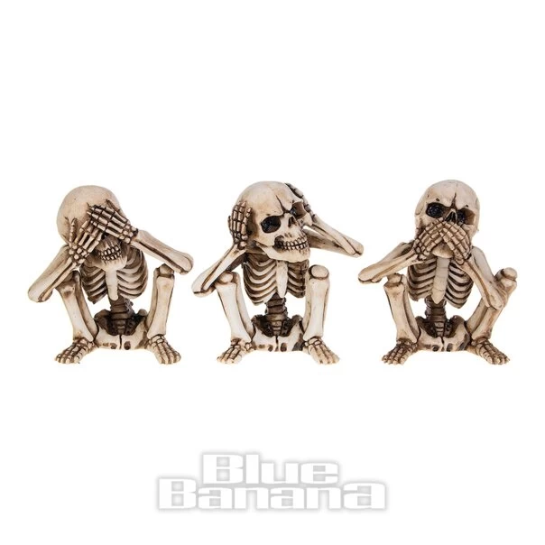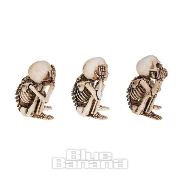 The Nemesis Now 3 Wise Skellington Figurines in 9.5cm. This set of three skeleton ornaments features the See No Evil, Hear No Evil, Speak No Evil positions. Add to your Gothic home decor or give as a gift for Halloween.