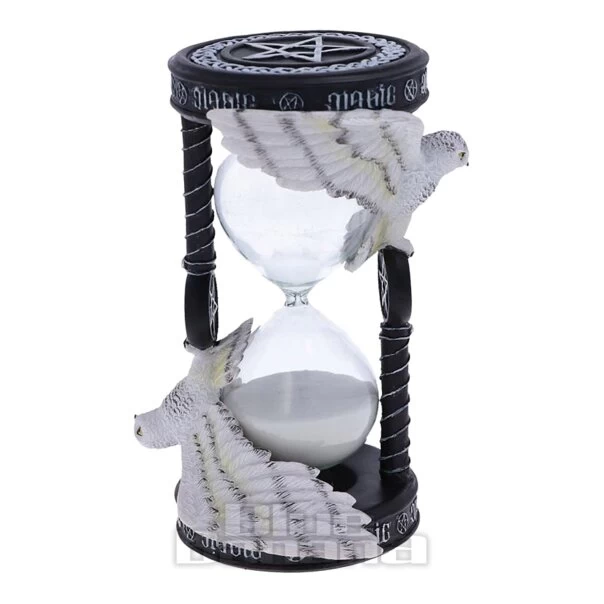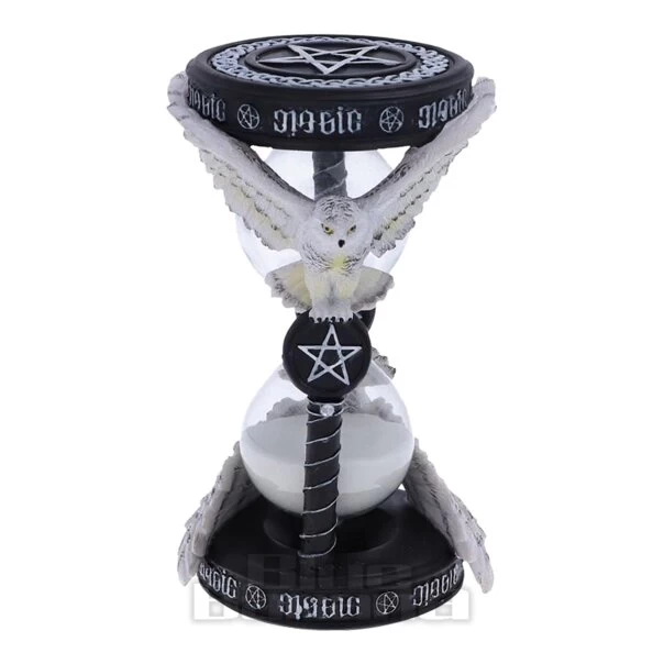 The Nemesis Now Awaken Your Magic Sand Timer in 17.5cm. This stunning fantasy Gothic design features Anne Stokes owls to the top and bottom with their wings open. The base features a pentagram and ‘magic’ text design.