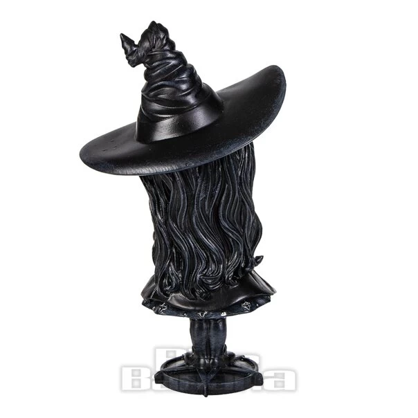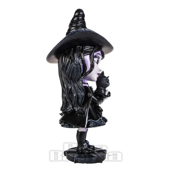 The Hexara Figurine from Nemesis Now. Available in 15 CM. This gothic ornament features a witch figure holding a black cat with pointy witches hat. The perfect addition to any occult home.