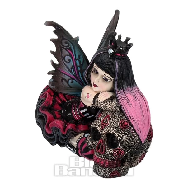 The Nemesis Now Lolita Little Shadows Figurine in 12cm. This ornament is from the Little Shadows range. This small fairy figurine is shown sitting beside a day of the dead style skull. Her pink and black colour combo makes her the perfect gothic princess. This fantasy figure is perfect for giving as a gift.