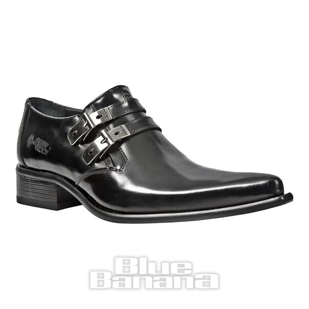 The New Rock M.2246-S20 Newman Shoes in black feature a smooth patent leather in a classic pointed-toe design. This sophisticated shoe still has hints of New Rock’s alternative design but in a finish that is meant for business.