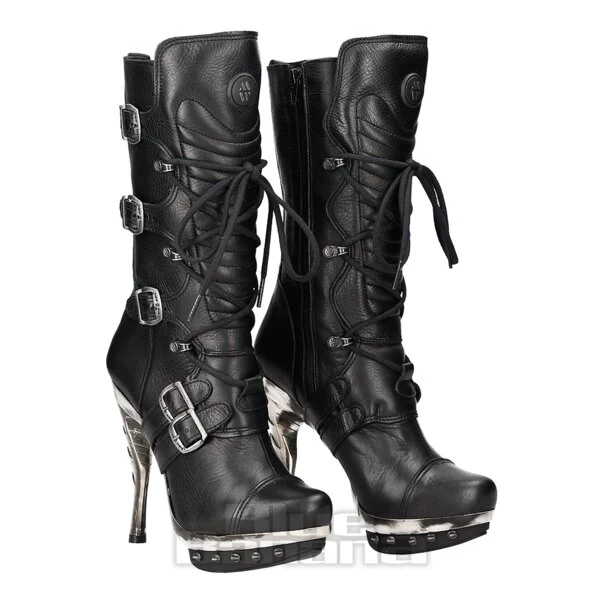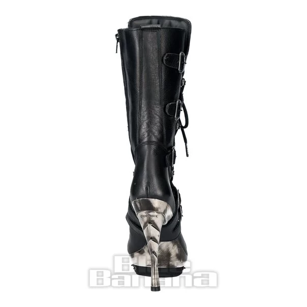 The New Rock M-PUNK001-C1 Heeled Boots in black. It doesn’t get more badass than this pair of New Rock Punk High Heels! Featuring premium materials and construction these boots feature their iconic metallic stiletto heel with studded platform.