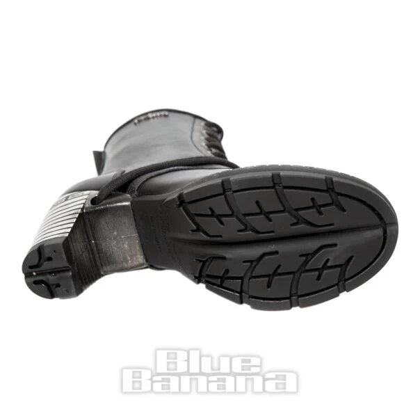 The New Rock Trail boot collection features a metal-look high heel with ridges. The block heel curves forward to maintain the balance on the middle of the foot, ensuring sleek style and plenty of comfort. Additional metallic details to the sole show-off that distinct New Rock style.