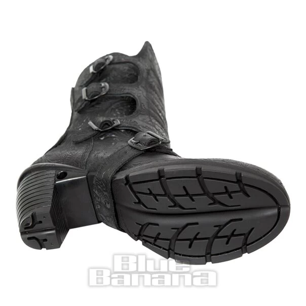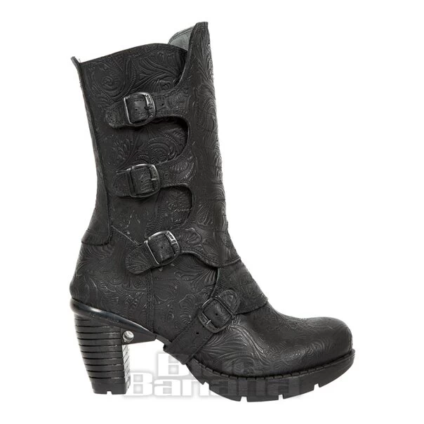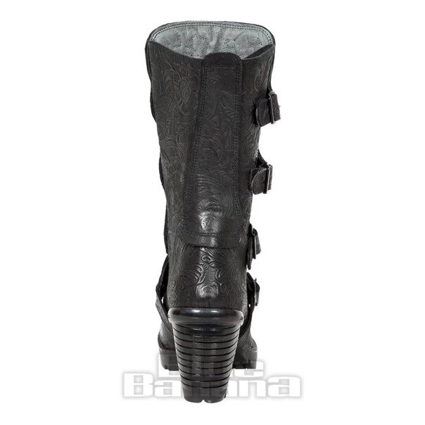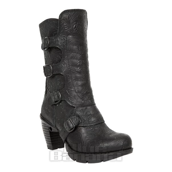 The New Rock M.TR003X-S3 Trail Vintage Flower Heeled Boots. With gothic florals and the classic New Rock metal details, this boot is perfect for so many occasions, especially with that heel!