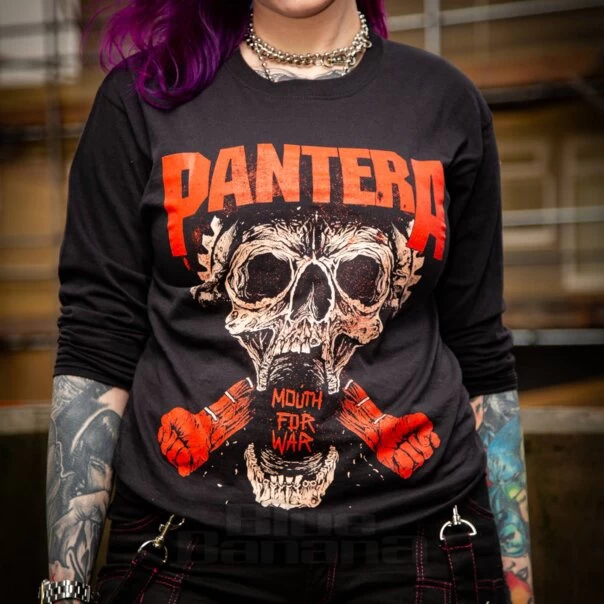 This long sleeve band tee is perfect for fans of the 90s metal band Pantera. With skull design on the front and ‘Mouth For War’ print on the back, this band t-shirt is ideal for winter.